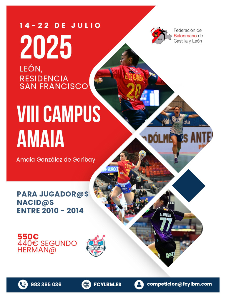 La Federación de Castilla y León de Balonmano organiza un año más el CAMPUS AMAIA, que concretamente en este 2025 alcanza la octava edición. A este campamento de verano, para jugadores y jugadoras, le pone nombre Amaia González de Garibay, la jugadora internacional vallisoletana.