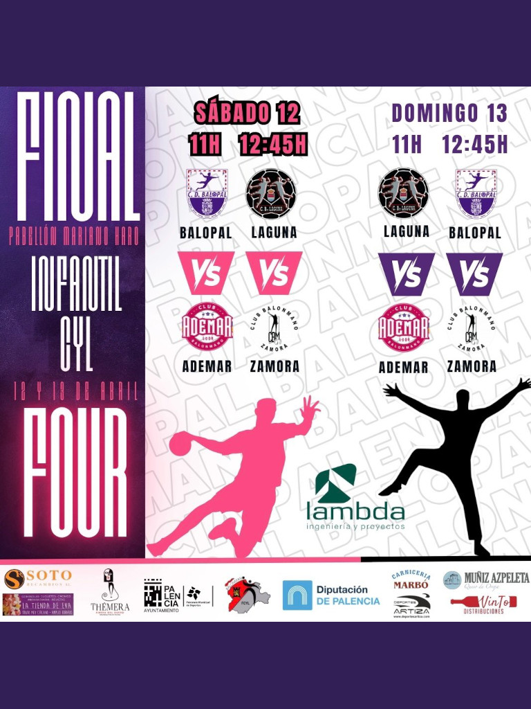 Este próximo sábado y domingo, en Palencia, se citan ABANCA ADEMAR LEÓN MARISTAS, MOTORGLASS BM ZAMORA A, ZAS VISIÓN BM LAGUNA y LAMBDA INGENIERÍA BALOPAL, los cuatro mejores conjuntos de la categoría infantil masculina, en la gran final de la temporada.