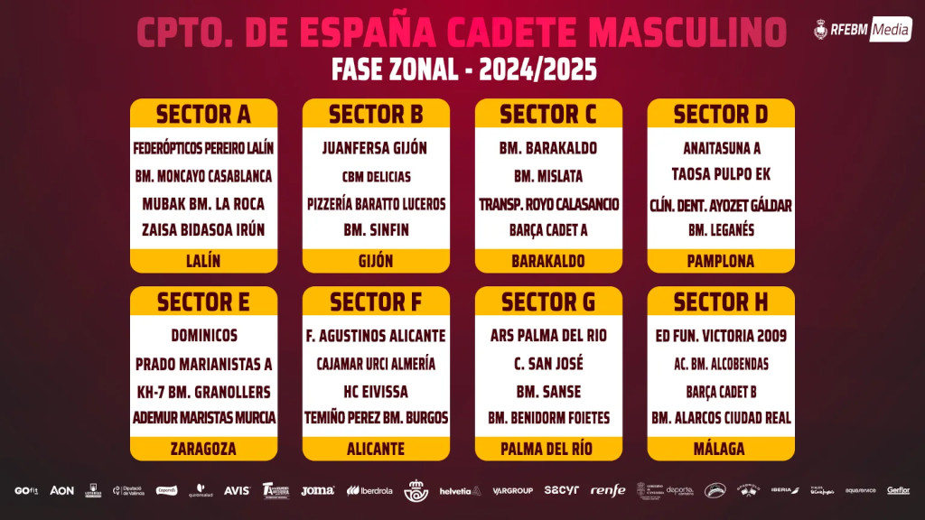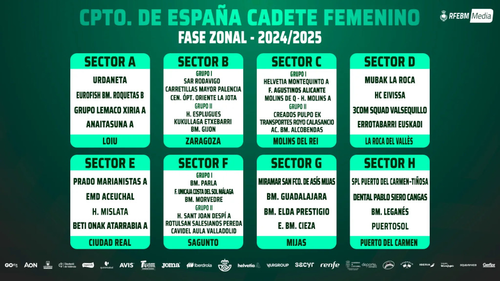 El Área de Competiciones y Actividades de la Real Federación Española de Balonmano ha dado a conocer en el día de hoy la distribución y sede de los equipos cadetes -masculinos y femeninos- que acceden a la fase zonal del Campeonato Estatal Cadete, la cual se disputará del 22 al 25 de mayo.