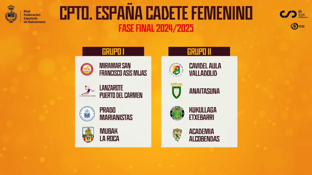 El CAVIDEL AULA VALLADOLID, campeón femenino de Castilla y León y del Sector F de la fase zonal, jugará en el Grupo II de la fase final con sede en Ciudad Real junto a los equipos: ANAITASUNA, KUKULLAGA ETXEBARRI y ACADEMIA ALCOBENDAS. En el Grupo I estarán los equipos: MIRAMAR SAN FRANCISCO ASÍS MIJAS, LANZAROTE PUERTO DEL CARMEN, PRADO MARIANISTAS y MUBAK LA ROCA.