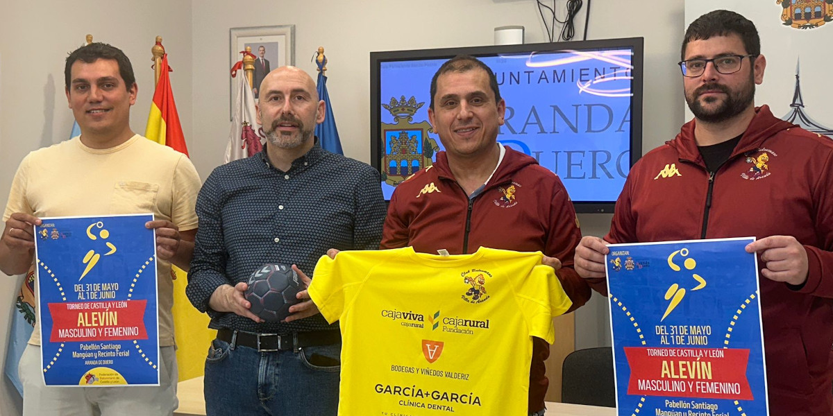 El campeonato, que reunirá a más de 400 deportistas, entre jugadores y técnicos, ha sido presentado en la mañana de hoy, ante los medios de comunicación, por Álvaro Cano, Director Técnico de Federación de Castilla y León de Balonmano, Juan Pablo Berdón, presidente del BM VILLA DE ARANDA, junto a Rodrigo García, técnico del club, y Juan Manuel Martín Abad, Concejal de Promoción y Seguridad Ciudadana del Excmo. Ayuntamiento de Aranda de Duero.