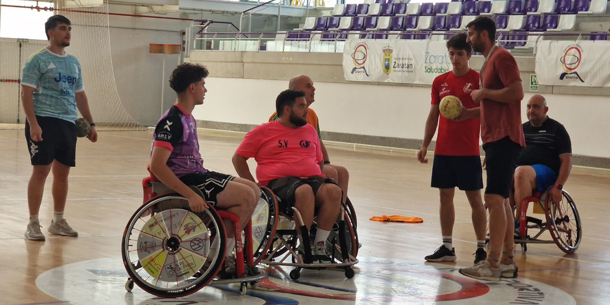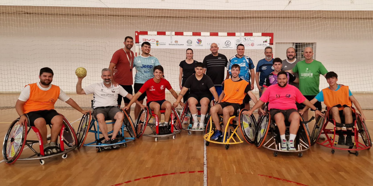 Aunque el curso todavía no ha concluido damos cuenta de la clases presencial que tuvo lugar en la tarde de ayer, viernes 18 de julio, en el Polideportivo «Infanta Juana» de Zaratán, que servía al entrenador Óscar Perales (de INCLUSPORT) para iniciar a los alumnos en el Balonmano en Silla de Ruedas, una clase que fue posible gracias a la colaboración de varios jugadores del mismo club.