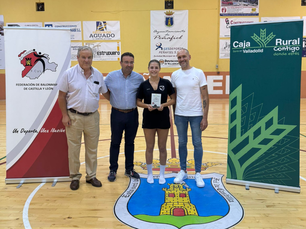 En el primero de los encuentros las leonesas hicieron valer su categoría y fueron aumentando la ventaja poco a poco, conforme pasaban los minutos, para ganar el compromiso que las medía al HANDVALL VALLADOLID por 32-23 (YouTube) al término del tiempo reglamentario. La jugadora Valeria de las Moras, del CAJA RURAL CLEBA, recibía, de manos de D. Ricardo Cifuentes, responsable de CAJA RURAL DE SORIA en Valladolid, el galardón como «mejor jugadora» de este partido.