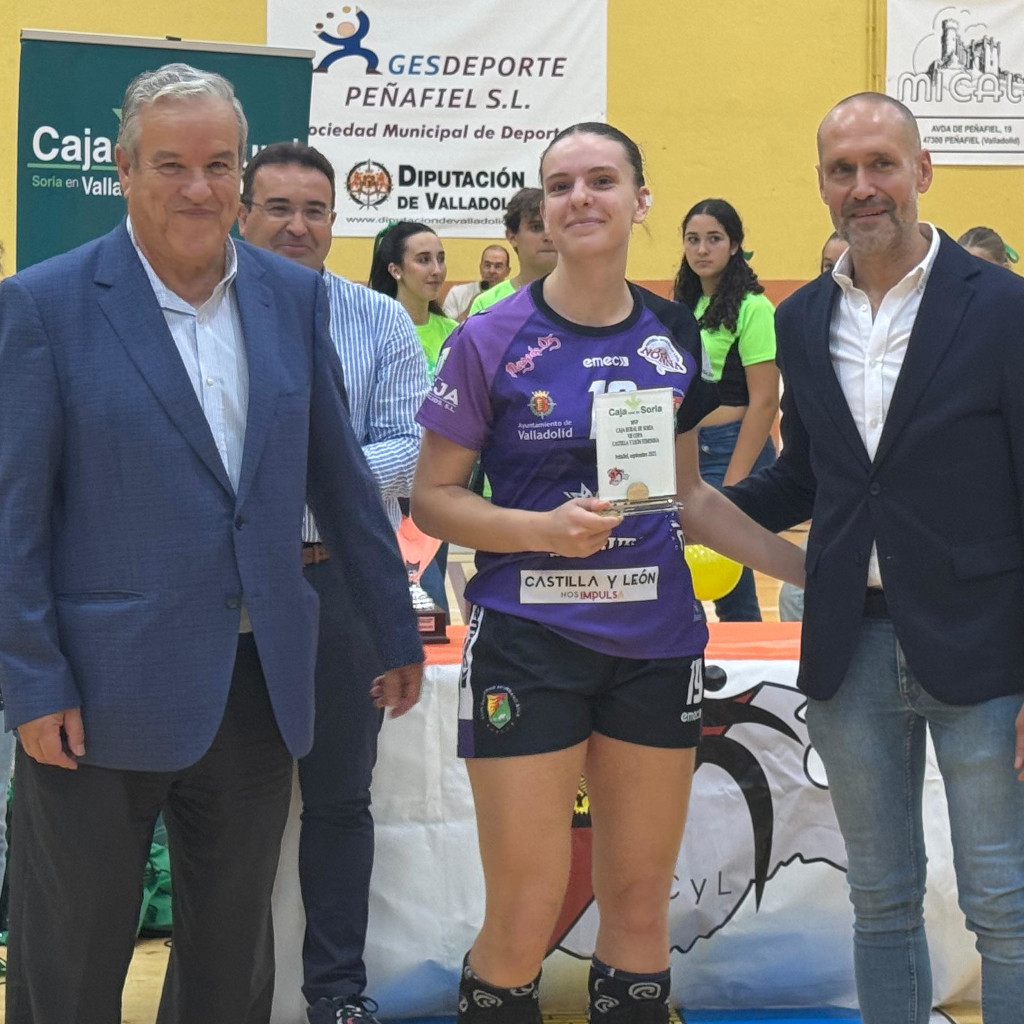 Mireia Diez, capitana del CAJA RURAL CLEBA, recogió el trofeo que acredita a su equipo como subcampeón, el cual le fue entregado por D. Javier Bernabé, Concejal de Festejos y Deportes del Ayuntamiento de Peñafiel, y D. Juan José Marcos, Presidente del CLEBA LEÓN.